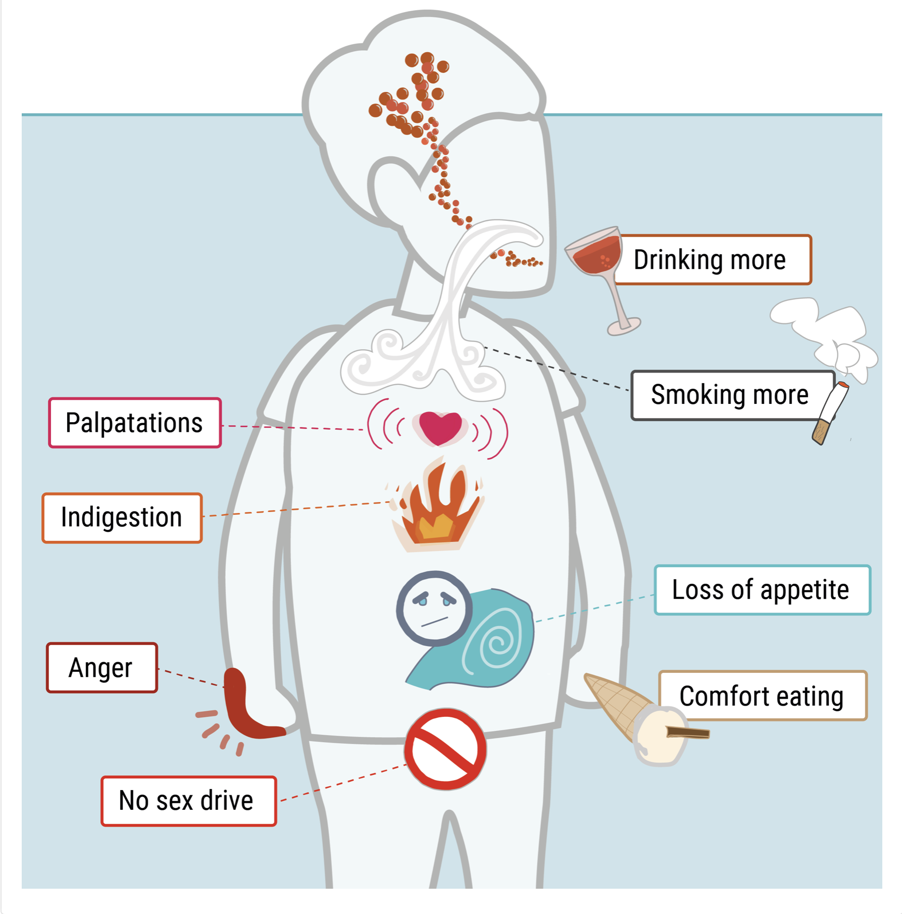 Have a look at the picture below, showing some of the PHYSICAL EFFECTS OF STRESS.